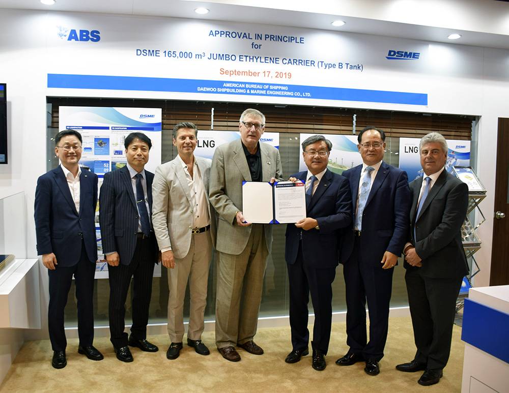 ABS has granted Approval in Principle (AIP) to Daewoo Shipbuilding and Marine Engineering Co. Ltd. (DSME) for its 165,000 CBM Jumbo Ethane/Ethylene Carrier design.